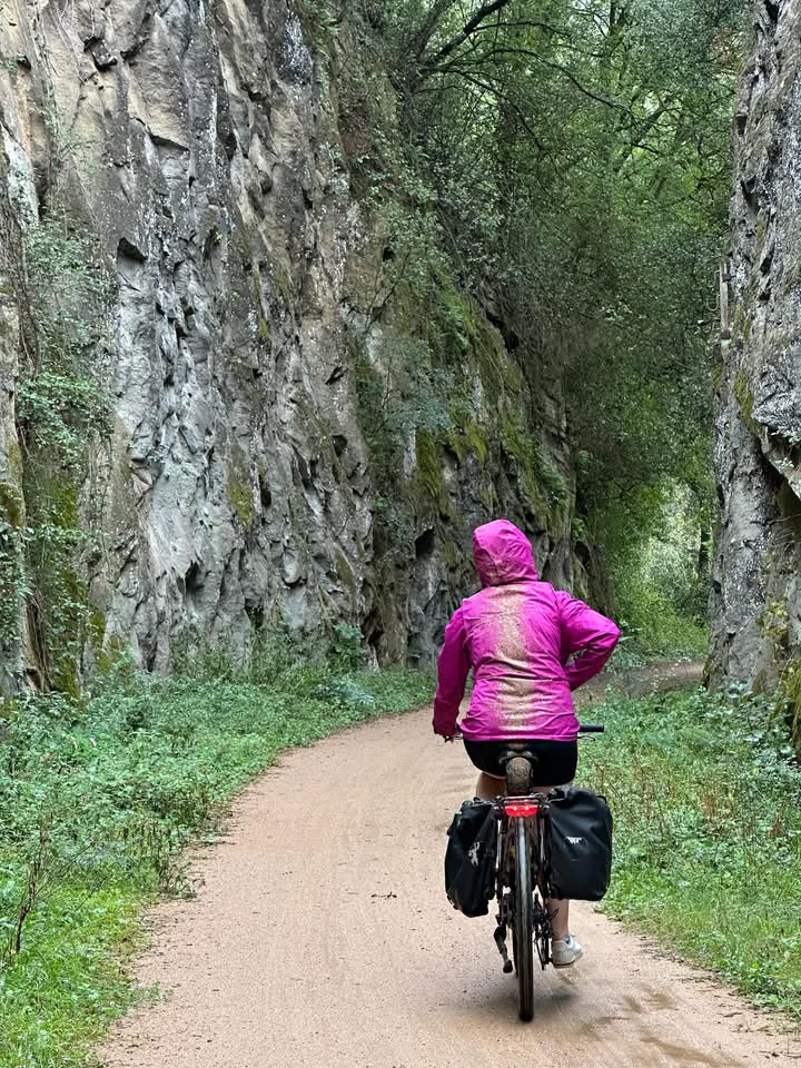 I had picked her up in London, rushing toward St. Pancras through the stifling streets with a confidence that would soon be quelled: she had seemed a bit unruly once I had packed her small frame with the heavy panniers containing her spare battery, my two outfits, and my lightweight camping supplies, testing her balance as I circled slowly around the courtyard outside the rental shop.