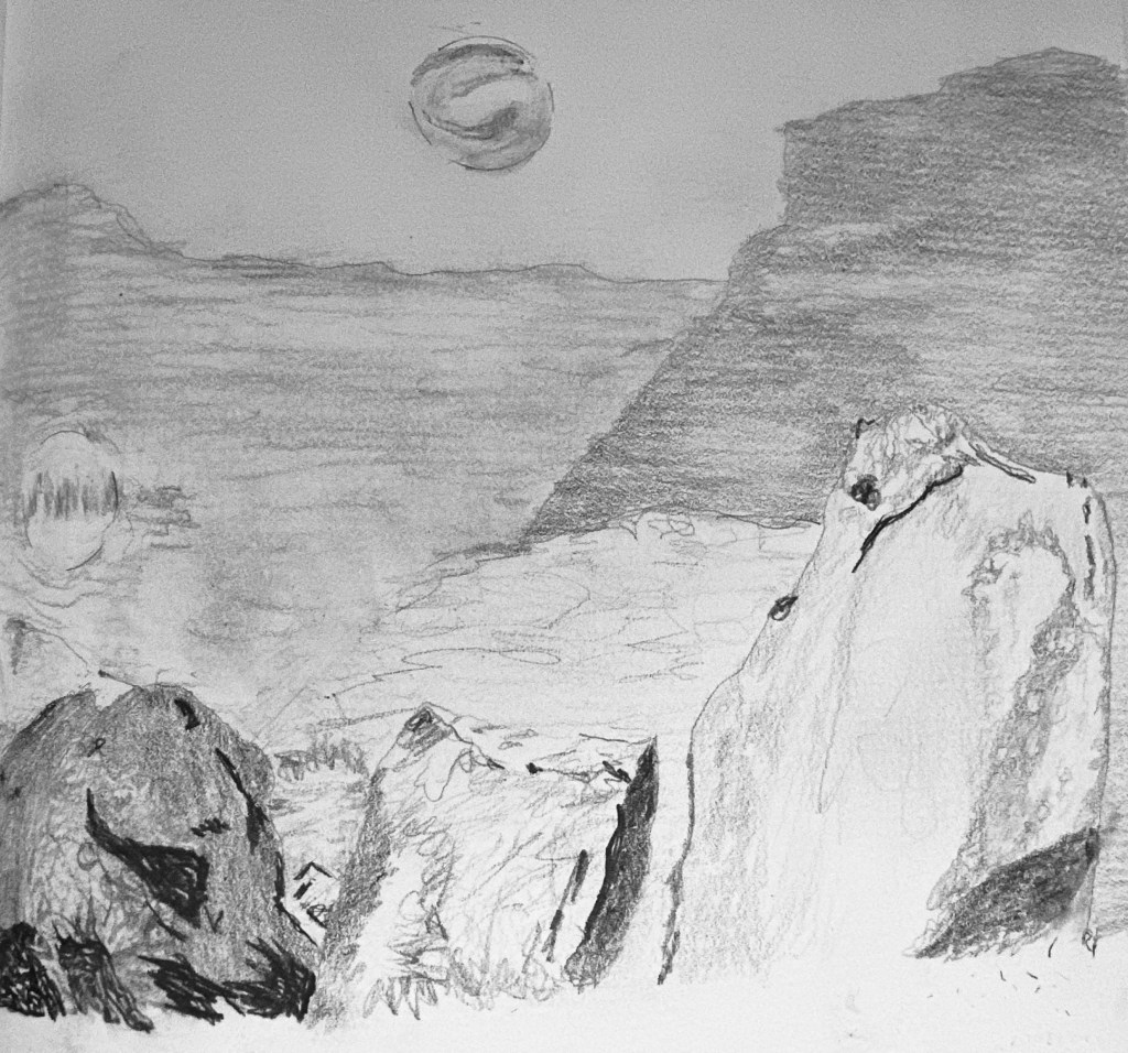 Dark precipice of heath and moor: