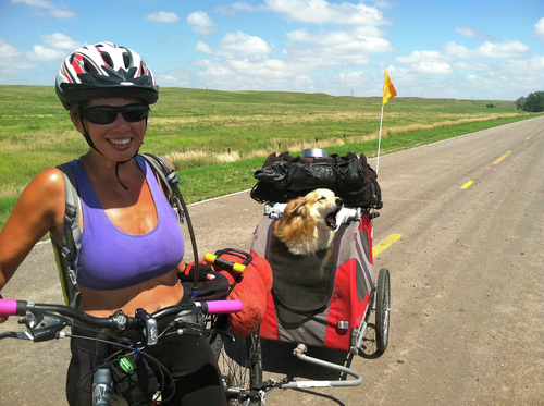 Since I was still wearing my leather coat and had begun to share the road with the hawgs as they began their annual migration to Sturgis, he assumed when I said I was riding my bike that I meant motorcycle. I explained once again that no, I was towing my girl on a bicycle, and he responded, “I’ve gotta see this.”
