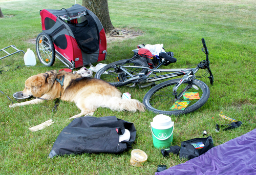 Poor girl, as it turns out, would prefer to limp along beside me and my perfect frame towing my perfect trailer, my perfect sleeping bag, my perfect rain slicker, ignoring the treat awaiting her on her pillow inside.